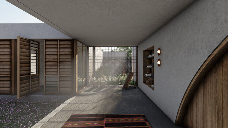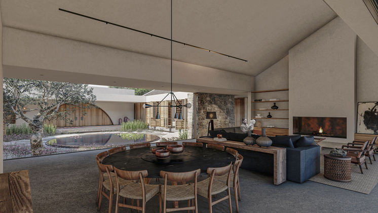 El planteamiento de la casa parte de un patio central al rededor del cual se despliega el programa privado y público, usándolo como amortiguador y conector entre las distintas actividades y espacios. En medio del patio se encuentra un espejo de agua circular con un solo olivo, re imaginando los patios con cuerpos de agua que caracterizan la arquitectura mexicana.